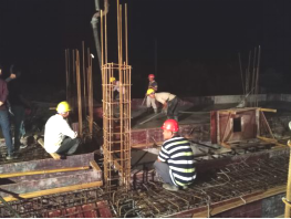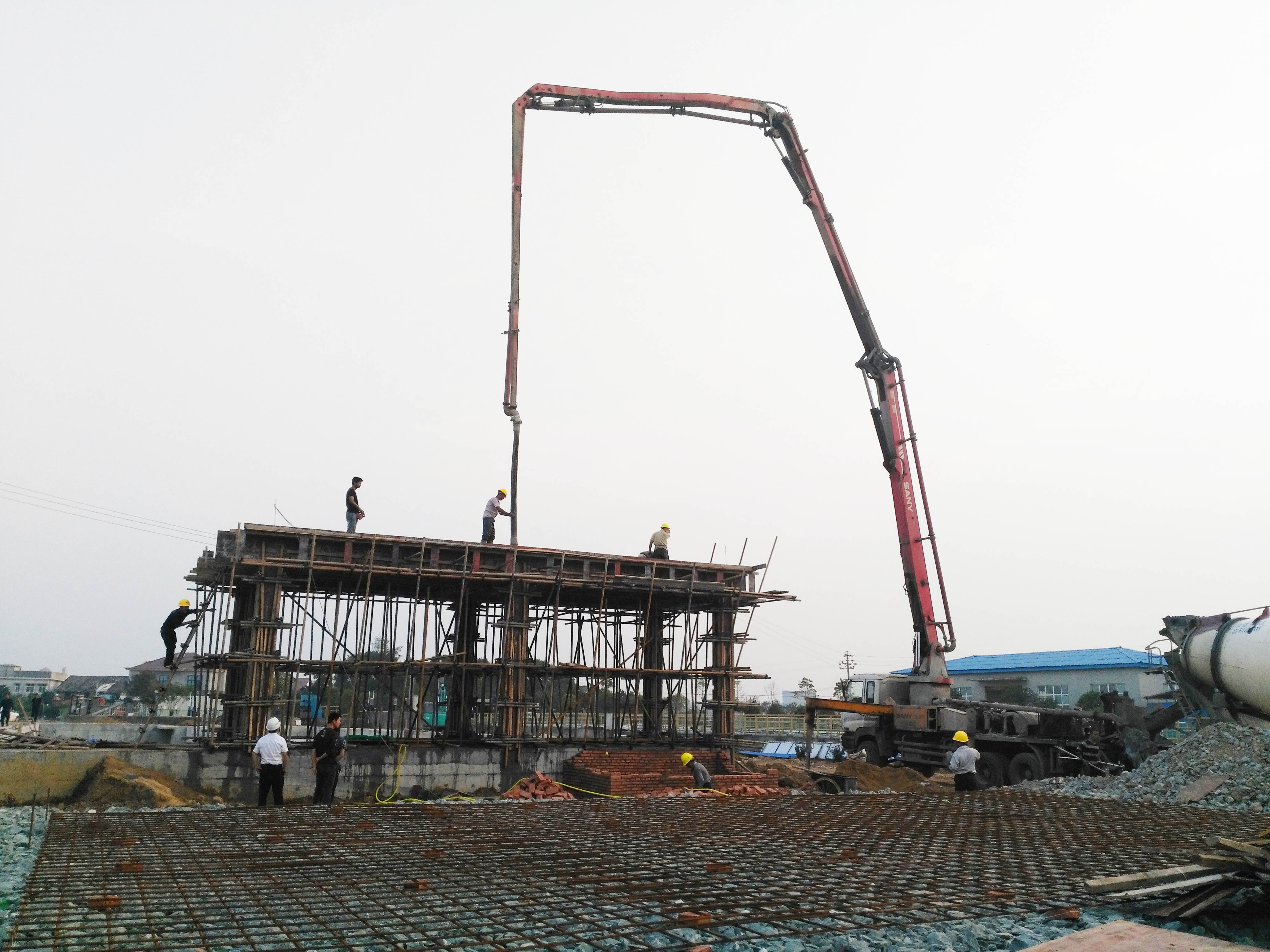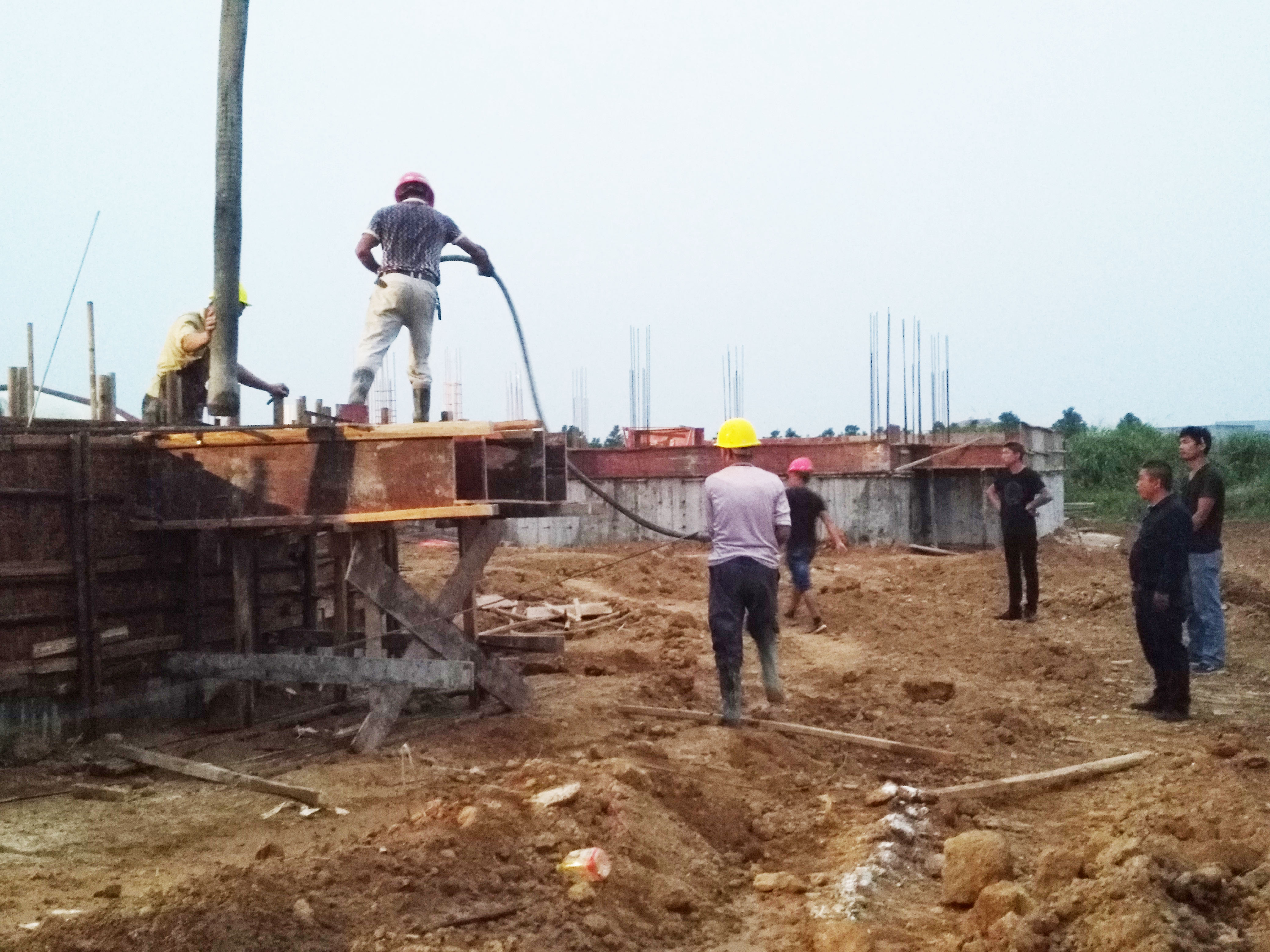 永安工程人在调节池的构架浇筑砼