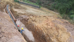 浔龙河项目工人奋力在挖沟,铺设排污管网