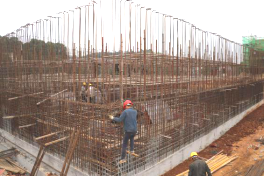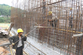 浔龙河项目部工人们在绑钢筋,搭钢架,加紧建设污水处理池