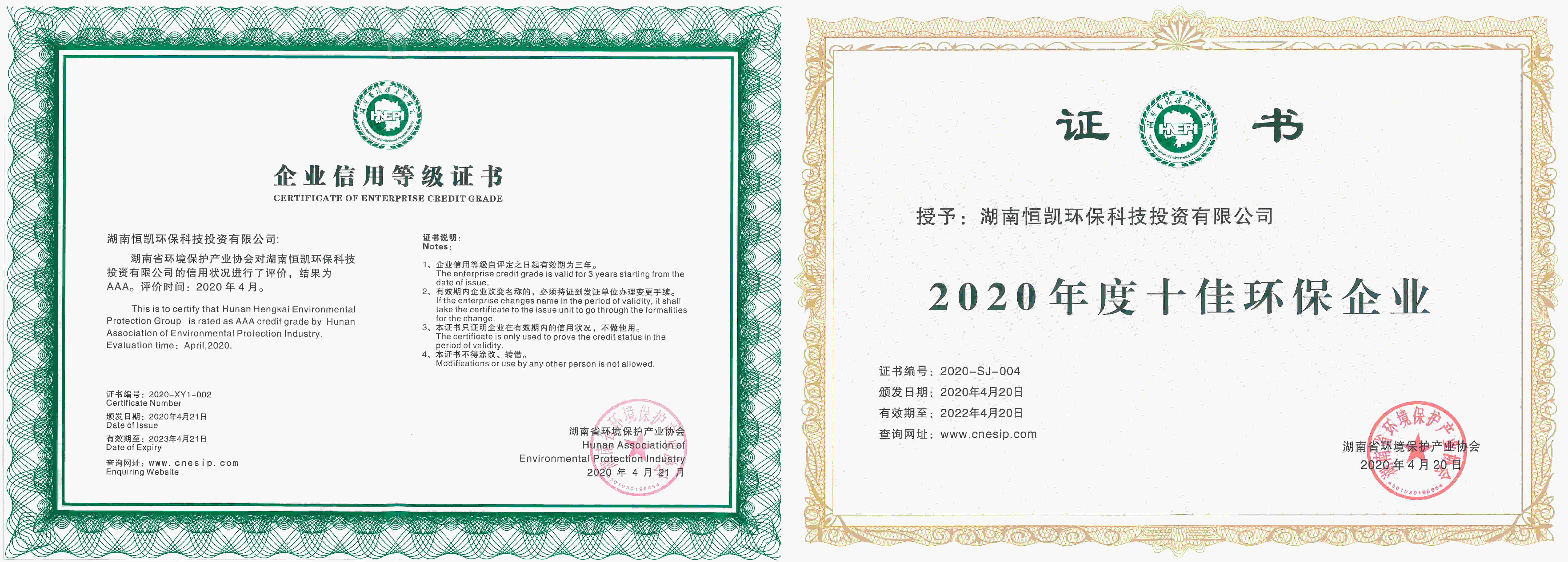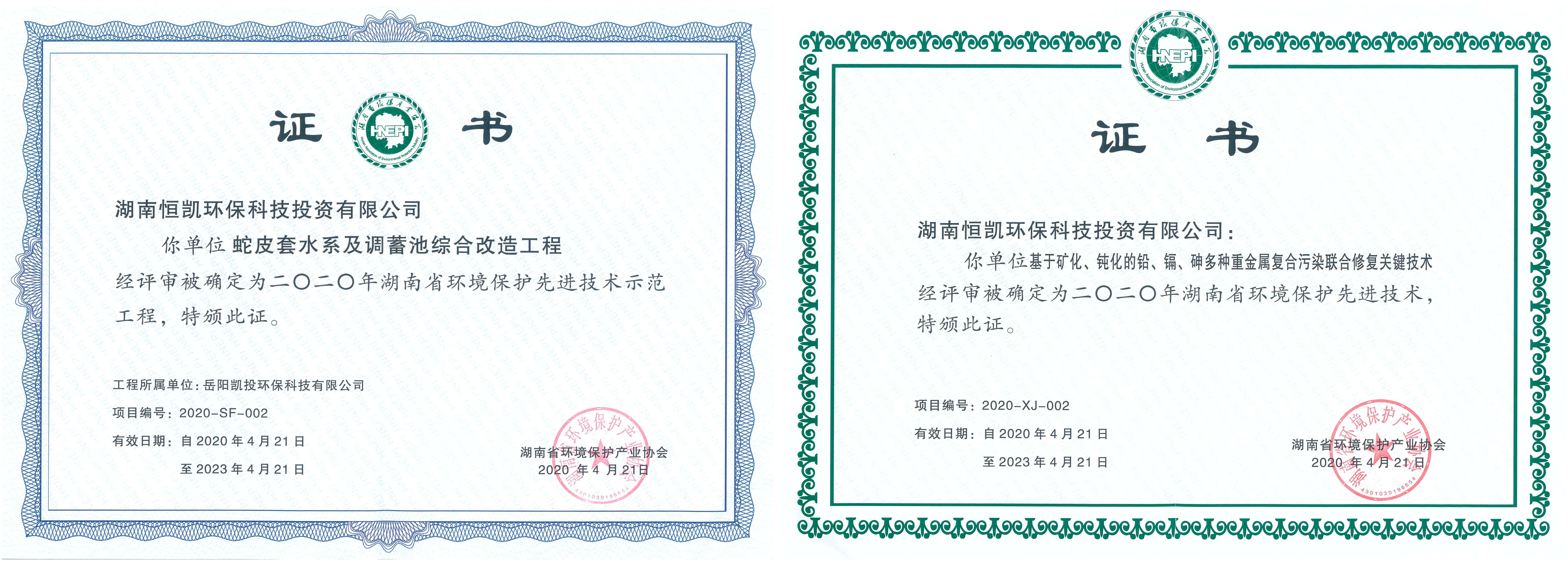 近日,湖南省环保产业协会公布了2020年湖南省环境保护产业《十佳企业》、《信用等级评价》、《先进技术》、《示范工程》的评审结果,恒凯环保在40家环保企业中脱颖而出,成功获评“湖南省环境保护产业十佳企业”和“湖南省AAA级环境保护企业”称号;我司基于矿化、钝化的铅、镉、砷多种重金属复合污染联合修复关键技术入选“2020年湖南省环境保护先进技术名录”,我司承建的岳阳市蛇皮套水系及调蓄池综合改造工程入选“2020年湖南省环境保护先进技术示范工程名录”。